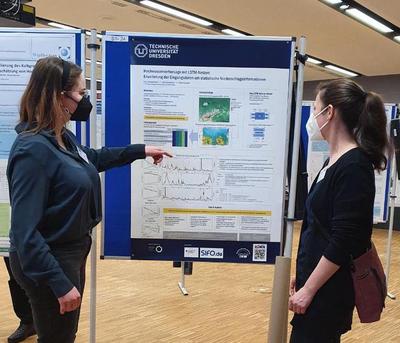 Pünktlich um 08:30 Uhr den 22.03.2022, am Weltwassertag, eröffneten die Veranstalter um Prof. Disse (TU München) den Tag der Hydrologie, die größte deutschsprachige Fachkonferenz zum Thema Hydrologie. Die alljährlich stattfindende Konferenz tagte dieses Jahr am Forschungszentrum Garching bei München. Unter dem Titel „Im Wandel – Klima, Wasser und Gesellschaft – Prozesse – Methoden – Kommunikation“ präsentierten und diskutierten die Teilnehmer aus Forschung Verwaltung und Praxis die neusten Erkenntnisse zu Themen der Modellierung und Vorhersage von extremen Ereignissen, nicht-stationäres Verhalten hydrologischer Prozesse und dem Water-Food-Energy-Nexus. Einige Mitglieder des KIWA Forschungsprojekts nahmen an der Konferenz teil und präsentierten die aktuellen Zwischenergebnisse des laufenden Projekts. Tanja Morgenstern präsentierte anhand ihres Posters mit dem Titel „Hochwasservorhersage mit LSTM-Netzen: Erweiterung der Eingangsdaten um statistische Niederschlagsinformationen“, wie künstliche neuronale Netze zur Hochwasservorhersage genutzt werden. In den Postersessions erfreute sich Tanja über regen Zulauf an ihrem Poster. Sie beantwortete souverän alle Fragen zum Thema und nahm Feedback wohlwollend entgegen.